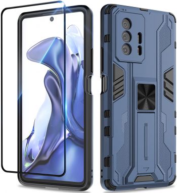 Btstring Hülle kompatibel mit Xiaomi 11T /Xiaomi 11T Pro 5G mit Schutzfolie, Militär Standard Cover Case Standfunktion Handy Hüllen-Blau