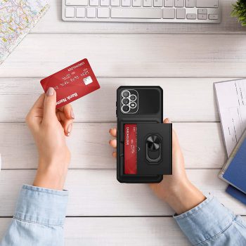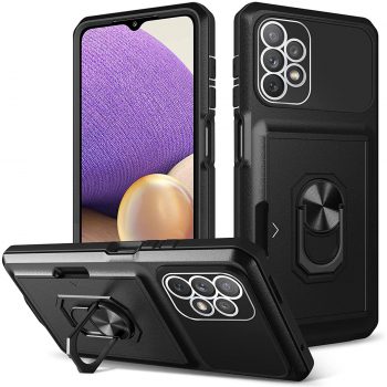Btstring Hülle kompatibel mit Samsung Galaxy A32 5G, Militär Standard Cover Case Metall Ring Halter Kartenfach Wallet Handy Hüllen Schwarz