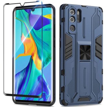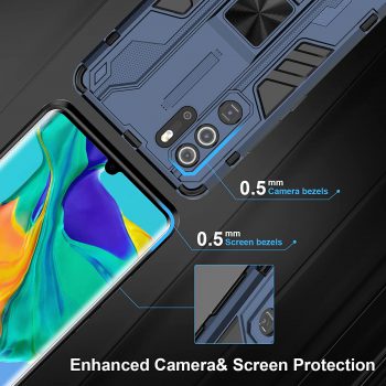 Btstring Hülle kompatibel mit Huawei P30 Pro mit Schutzfolie, Militär Standard Cover Case Standfunktion Handy Hüllen- Blau