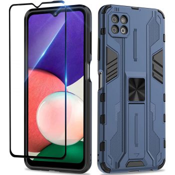 Btstring Hülle kompatibel mit Samsung Galaxy A22 5G mit Schutzfolie, Militär Standard Cover Case Standfunktion Handy Hüllen- Blau